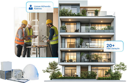 Deprem testi, deprem raporu, güçlendirme ve kentsel dönüşüm hizmetlerimizle binalarınızı güvenli, dayanıklı ve modern yaşam alanlarına dönüştürüyoruz.